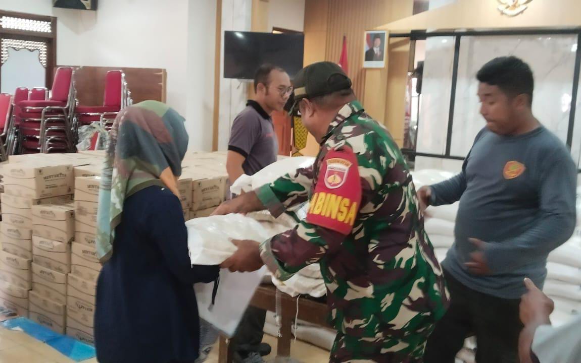 Surakarta, Babinsa Kelurahan Joyotakan Koramil 03/Serengan Kodim 0735/Surakarta Serma Rumbawa membantu pengamanan pendistribusian beras dan minyak goreng dari bulog bertempat di aula Kelurahan Joyotakan Kecamatan Serengan Kota Surakarta,19/11/2025