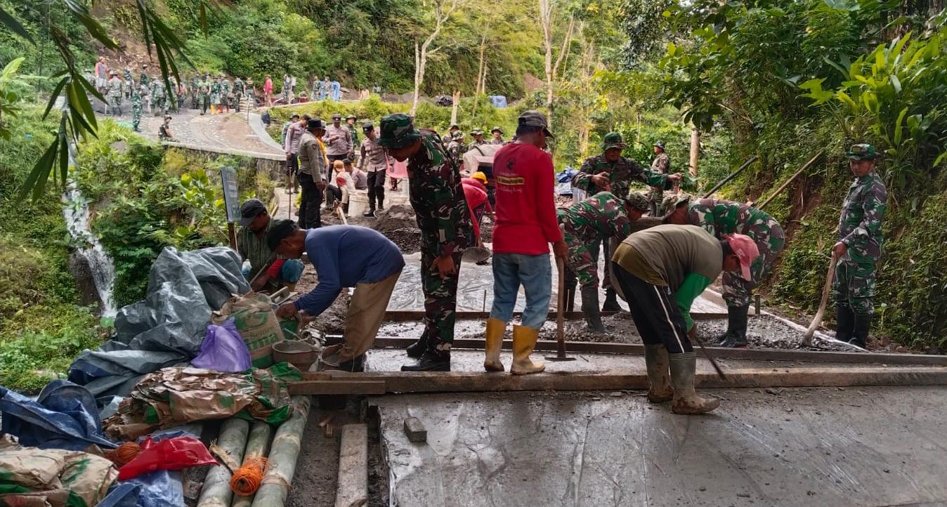 “Dengan suasana hari Minggu yang merupakan hari libur ditambah cuaca yang cukup dingin di lereng kaki Lawu, anggota Satgas TNI,Polri dan masyarakat tampak bersemangat menyelesaikan pengerjaan pengecoran jalan,” katanya.