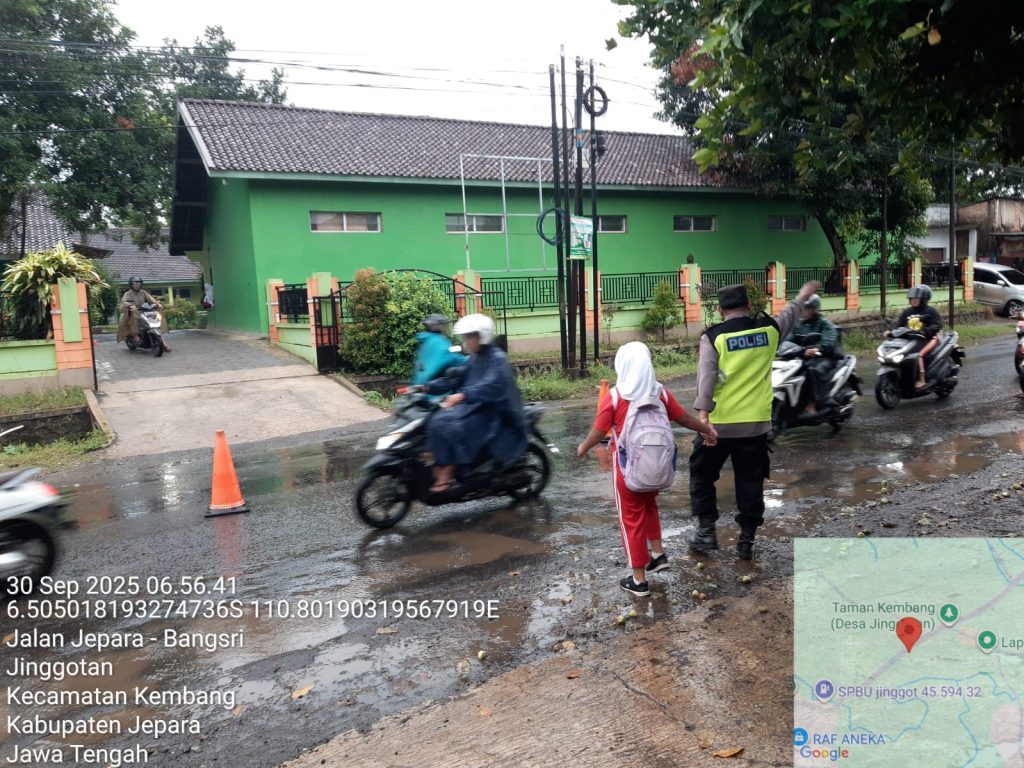 Polres Jepara Gelar Pengaturan Lalu Lintas di Jam Rawan Padat, Meski Diguyur Hujan