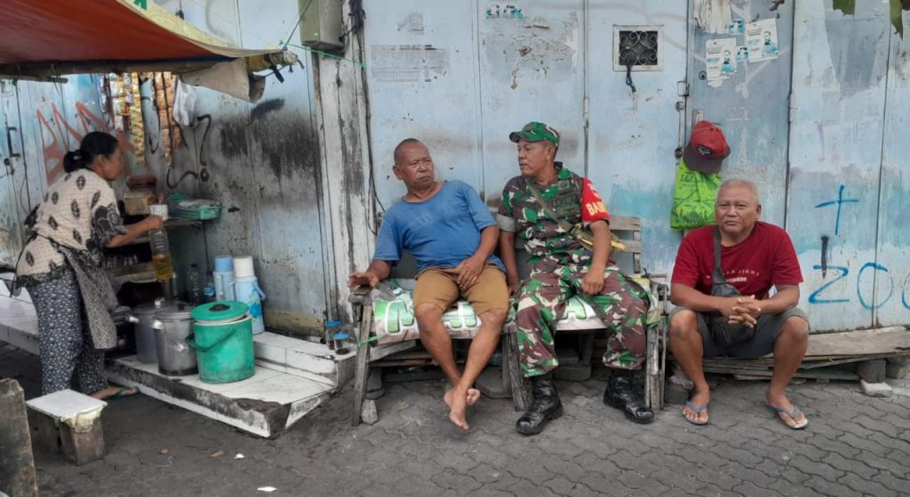 Surakarta, Kegiatan Patroli wilayah rutin dilakukan Babinsa Joyotakan Koramil 03/Serengan Kodim 0735/Surakarta Serka Sudiyono, guna mengetahui perkembangan dan permasalahan yang terjadi di