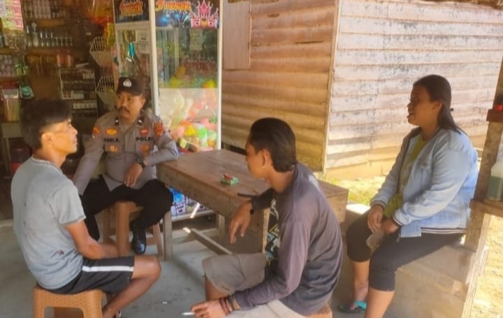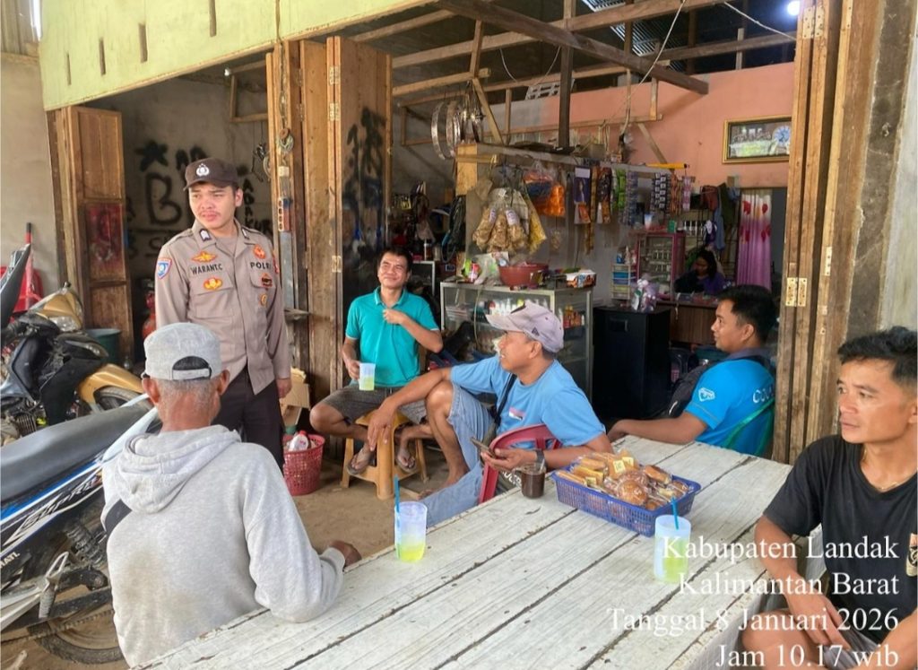 LANDAK. Patroli Siang Humanis, Polisi Akrab Ngobrol Bareng Warga Sambil Minum Es Polsek Meranti ~ Polres Landak ~ Polda Kalbar ~ Dalam upaya