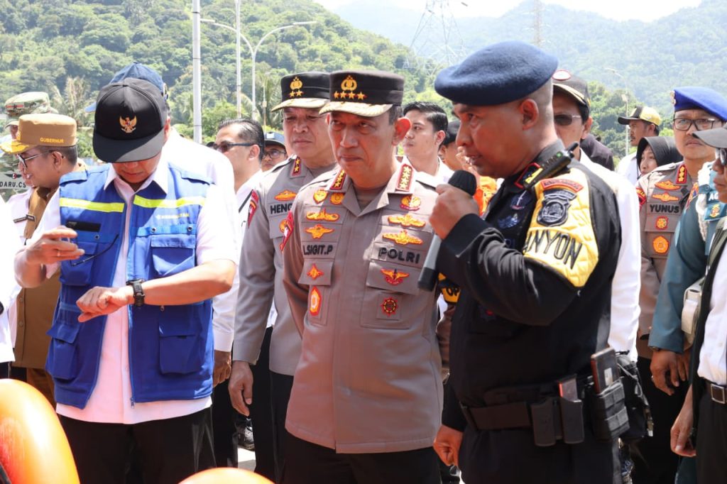 Merak – Kapolda Banten Irjen Pol Hengki mendampingi Kapolri Jenderal Listyo Sigit Prabowo beserta rombongan saat meninjau Pos Pengamanan Natal dan Tahun Baru (Nataru)