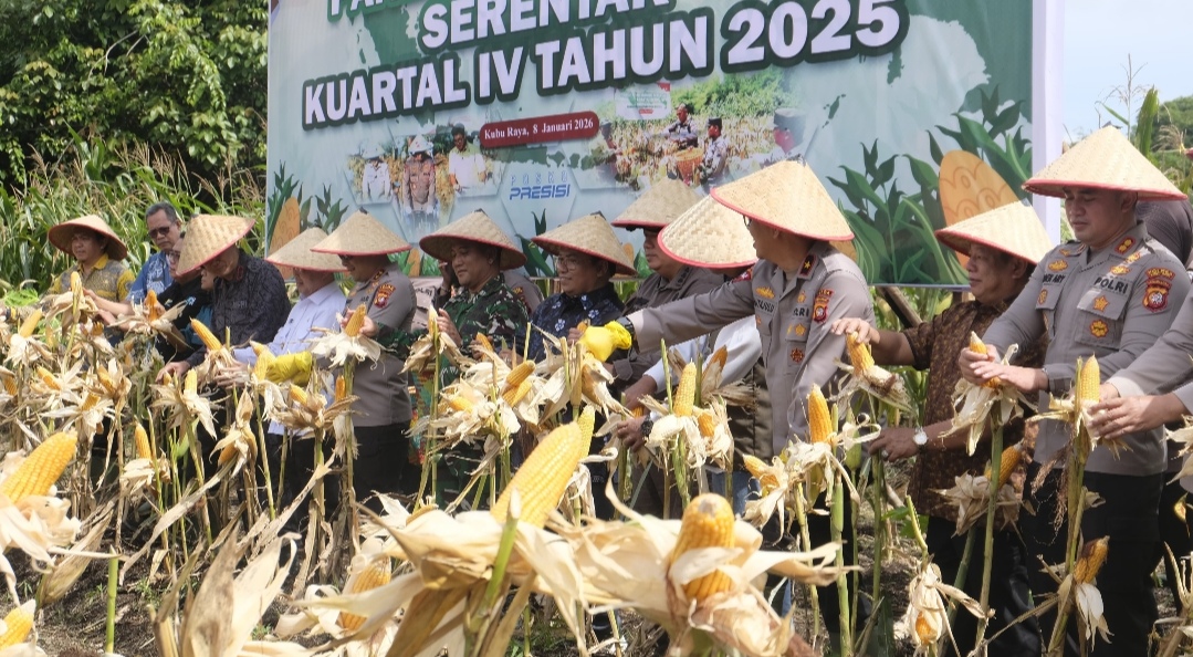 ​”Hari ini, total luasan panen di seluruh jajaran Polda Kalbar mencapai 127,59 hektar dengan estimasi hasil mencapai 879,09 ton. Jika melihat data kumulatif hingga awal 2026 ini, potensi lahan jagung yang kita kelola telah mencapai 12.982,86 hektar,” jelas Kombes Pol Bambang.