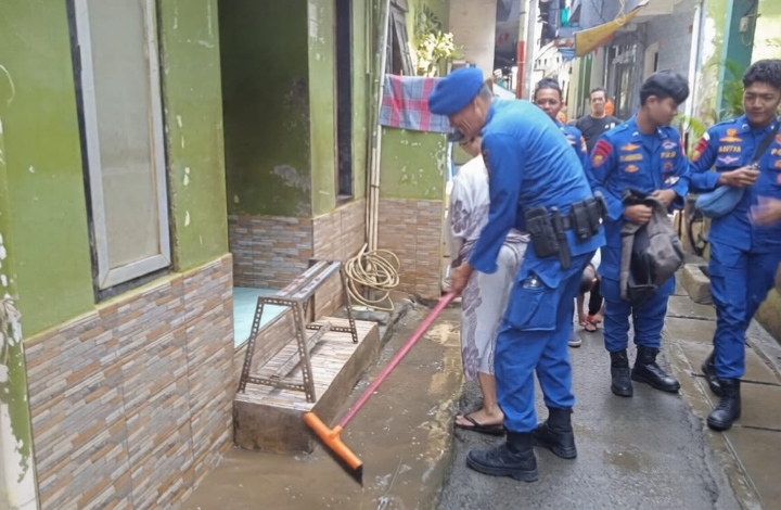 Hingga saat kegiatan berlangsung, kondisi air dilaporkan mulai surut sehingga personel Ditpolairud Polda Metro Jaya bersama BPBD Jakarta Timur bergerak membantu warga membersihkan rumah-rumah yang terdampak.
