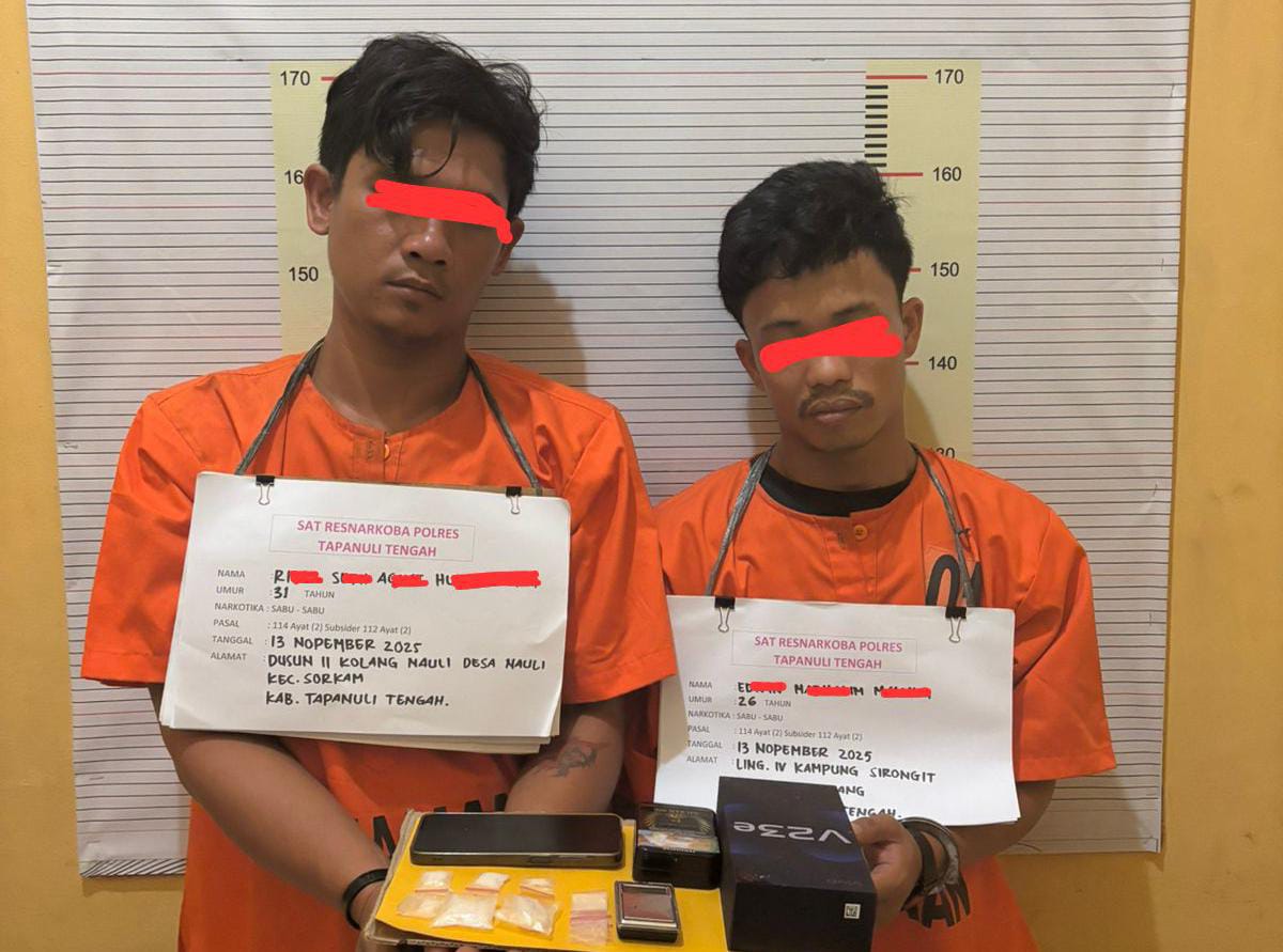 TAPANULI TENGAH (Tapteng) – Kepolisian Daerah Sumatera Utara (Polda Sumut) melalui Satuan Narkoba Polres Tapanuli Tengah (Tapteng) berhasil membekuk dua orang yang diduga sebagai pengedar narkotika jenis sabu-sabu di dua lokasi berbeda, yakni di Kabupaten Tapteng dan Kota Sibolga. Dari tangan kedua pelaku, petugas menyita total sabu-sabu dengan berat bruto mencapai 12,61 gram.