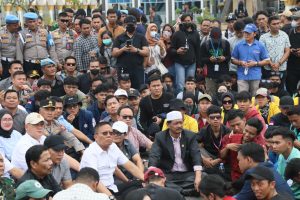 Kapolda Bengkulu Irjen Pol. Mardiyono, S.I.K., M.Si., bersama Wakapolda Brigjen Pol. Dicky Sondani, S.I.K., M.H., Danrem, serta anggota DPRD Provinsi Bengkulu turun langsung memantau jalannya aksi. Dalam momen yang jarang terjadi, Kapolda bahkan duduk bersama perwakilan DPRD dan massa di atas aspal depan gedung dewan untuk mendengarkan langsung aspirasi yang disampaikan koordinator lapangan.