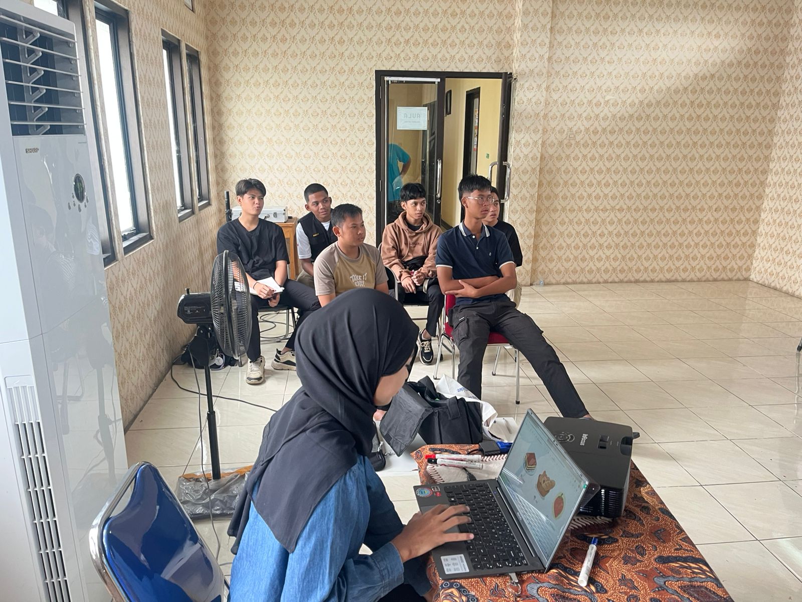 Sejak pagi hari, para peserta terlihat datang satu per satu ke lokasi pelatihan dengan pakaian yang sebagian masih basah akibat hujan. Kehadiran mereka menunjukkan komitmen tinggi terhadap proses pembelajaran. Kegiatan pelatihan tetap berlangsung sesuai jadwal dengan suasana kelas yang tertib, fokus, dan interaktif.