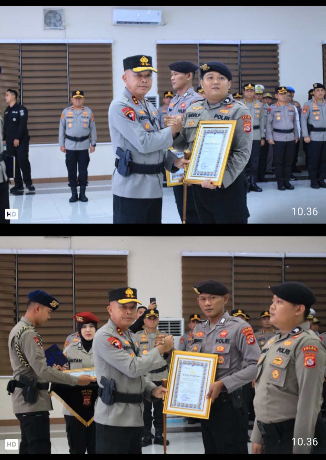 Pada akhir rangkaian kegiatan, Kapolda Banten memberikan penghargaan kepada dua personel Direktorat Pengamanan Objek Vital Polda Banten atas prestasi pengungkapan kasus penyelundupan narkoba. Kedua personel tersebut berhasil menggagalkan peredaran narkotika jenis sabu seberat sekitar lima kilogram melalui pemeriksaan X-ray di Pelabuhan Bakauheni, Lampung, pada tahun 2025, sebagai bentuk dedikasi nyata dalam pemberantasan kejahatan transnasional. (***)