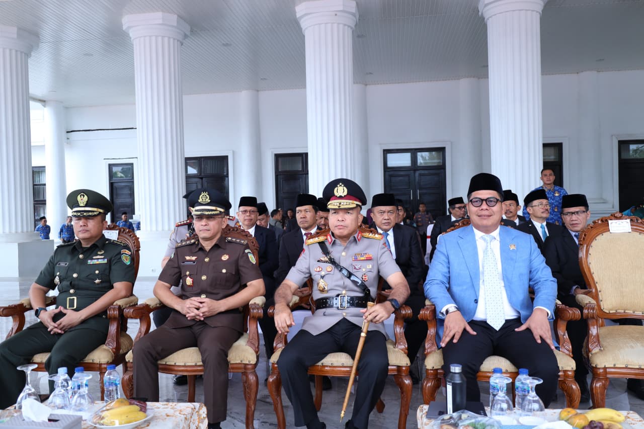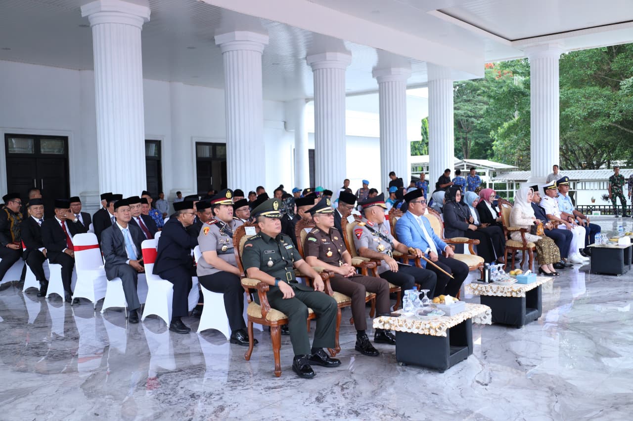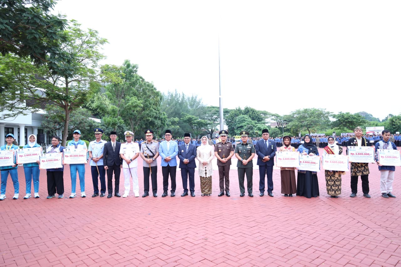 Upacara peringatan tersebut dipimpin langsung oleh Gubernur Banten Andra Soni dan dihadiri oleh jajaran Forum Koordinasi Pimpinan Daerah (Forkopimda) Provinsi Banten, termasuk Ketua DPRD Provinsi Banten Fahmi Hakim, Kapolresta Serang Kota Kombes Pol Yudha Satria, serta pejabat utama Polda Banten dan tamu undangan lainnya. Suasana berlangsung penuh semangat nasionalisme dengan pengibaran bendera Merah Putih dan lantunan lagu kebangsaan Indonesia Raya.