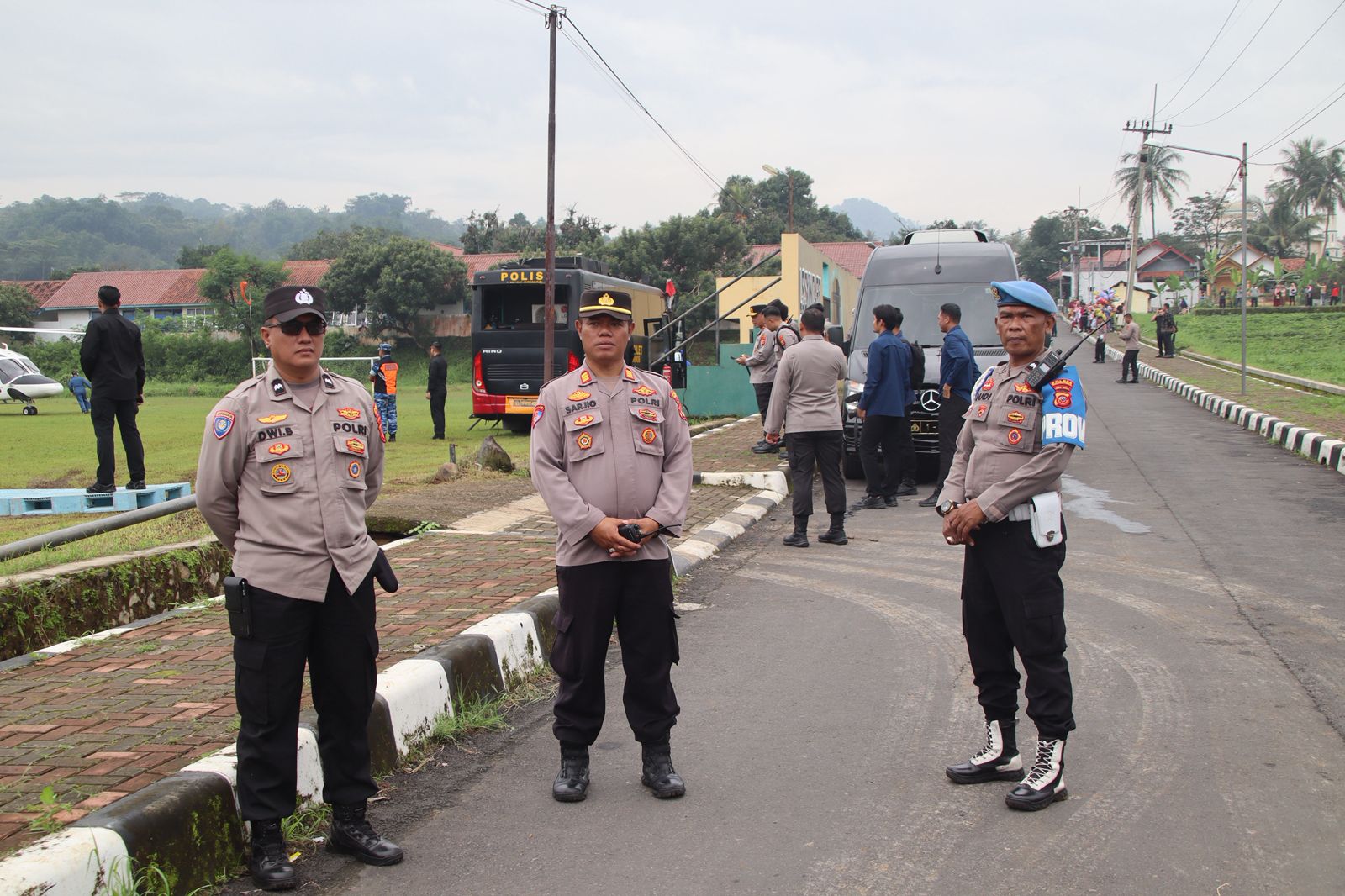 Majalengka – Kapolda Jawa Barat Irjen Pol. Dr. Rudi Setiawan, S.I.K., S.H., M.H., didampingi para Pejabat Utama (PJU) Polda Jabar beserta Kapolres Majalengka AKBP Rita Suwadi, S.H., S.I.K., M.M., menyambut kedatangan Kepala Kepolisian Negara Republik Indonesia (Kapolri) di lapangan sepak bola Desa Tenjolayar, Kecamatan Cigasong, Kabupaten Majalengka.(23/2/26)