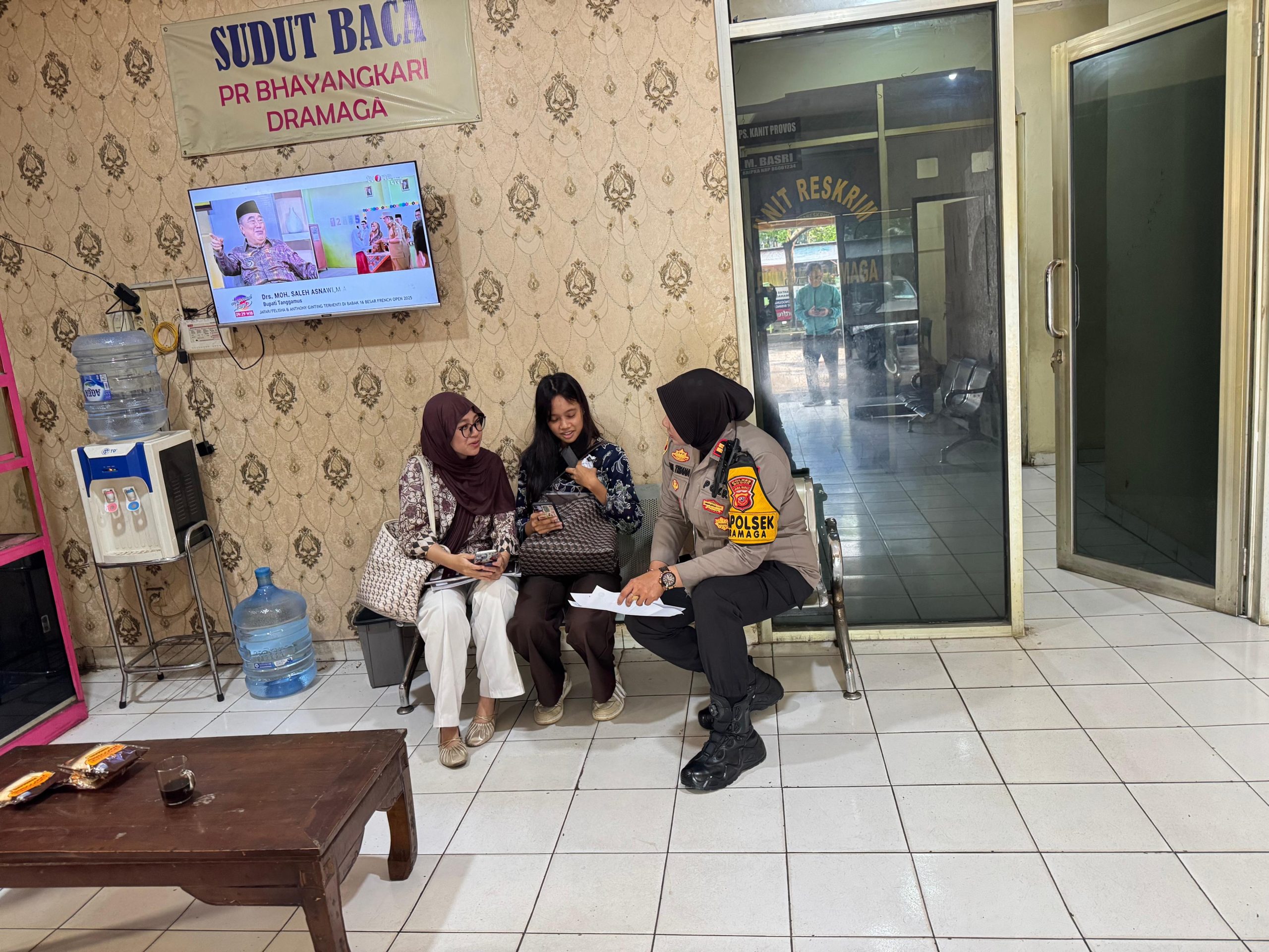 Pada kegiatan Jumat curhat kali ini di mana Kapolsek Iptu Desi Triana,SH.,MH menerima kunjungan 2 (dua) orang mahasiswa Sdri. Metha (20) dan Sdri. Dina (19) di mana Kapolsek Dramaga Iptu Desi mendengarkan keluhan aduan laporan yang kehilangan kartu mahasiswa dan juga masih terpantaunya gangguan Harkamtibmas diwilayah hukum Kecamatan Dramaga ini, menampung keluh kesah warga masyarakat di wilayah Kecamatan Dramaga, di mana Kapolsek menyampaikan langsung untuk bisa sama – sama bekerja sama untuk terus memberantas aksi tindakan yang meresahkan serta mengganggu stabilitas ketertiban warga masyarakat, tentunya Forkompimcam Muspika juga akan terus bersinergi dukung tindakan atau langkah Polsek Dramaga dalam melakukan tindakan kepolisian ataupun giat operasi razia dalam hal apapun khususnya yang menyangkut gangguan terhadap warga masyarakat.