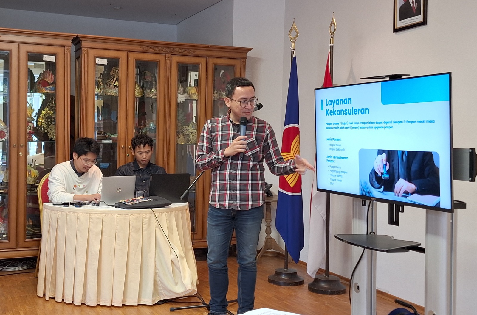 Pada sesi pertama, Konsul Protokoler dan Konsuler, Ifan Pandji Kresna, bersama Konsul Ekonomi, Cahya Sumaningsih, menyampaikan materi mengenai kebijakan pemerintah Indonesia dalam mendukung dan melindungi pekerja migran.