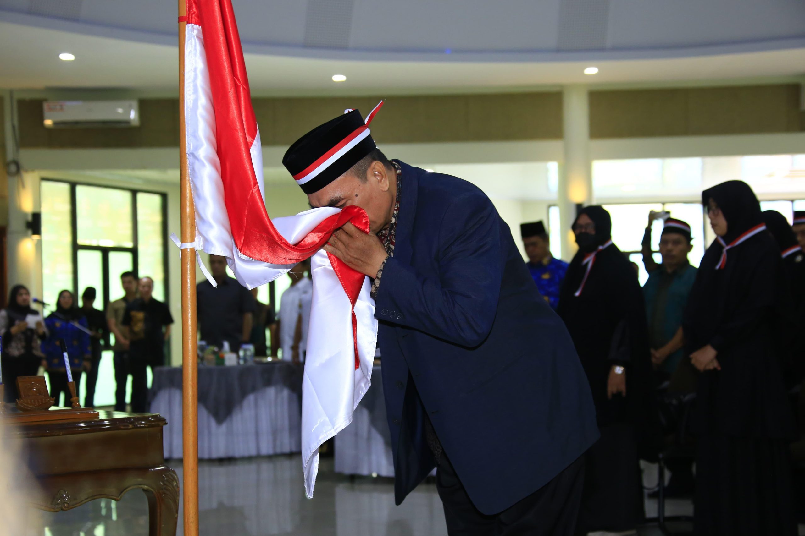 Selanjutnya, para peserta melakukan penandatanganan surat pernyataan kesetiaan, kemudian dilanjutkan dengan prosesi mencium bendera merah putih sebagai simbol kecintaan dan penghormatan terhadap Indonesia.