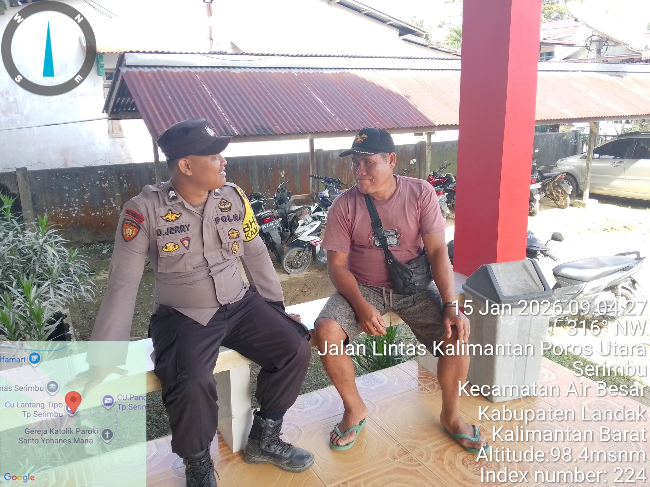 LANDAK. Polsek Air Besar ~ Polres Landak ~ Polda Kalbar ~ Guna menciptakan situasi kamtibmas yang aman dan kondusif, jajaran Polsek Air Besar melaksanakan patroli siang dengan pendekatan humanis, Kamis (15/1/2026). Dalam kegiatan tersebut, personel kepolisian tidak hanya melakukan pengawasan wilayah, tetapi juga bercengkrama langsung bersama warga sambil berdiskusi ringan terkait keamanan lingkungan.