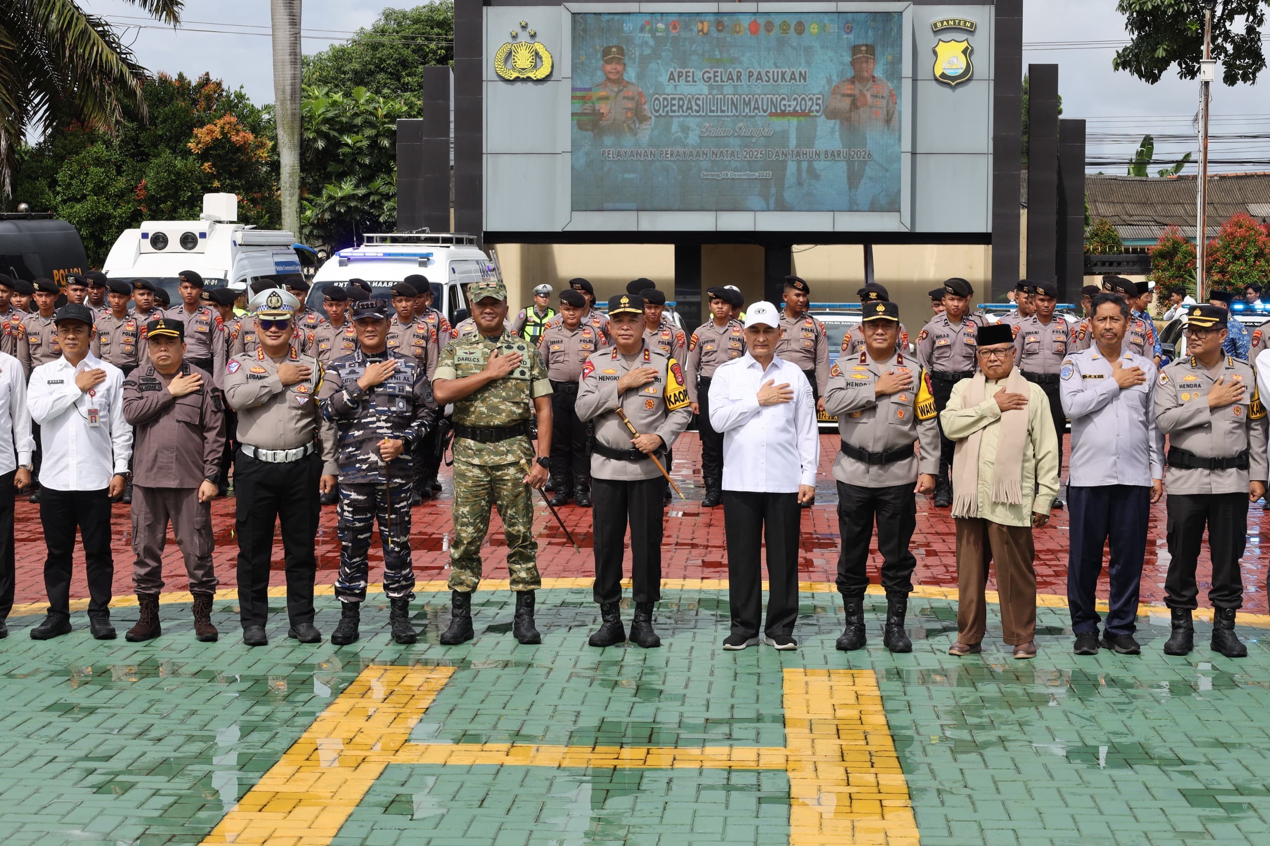 Serang —– Polda Banten menggelar Apel Gelar Pasukan Operasi Lilin 2025 sebagai bentuk pengecekan akhir kesiapan personel maupun sarana dan prasarana dalam rangka pengamanan perayaan Natal 2025 dan Tahun Baru 2026. Apel tersebut dipimpin langsung oleh Kapolda Banten Irjen Pol Hengki dan diikuti oleh personel Polri, TNI, serta instansi terkait lainnya bertempat di Lapangan Apel Polda Banten pada Jumat (19/12).