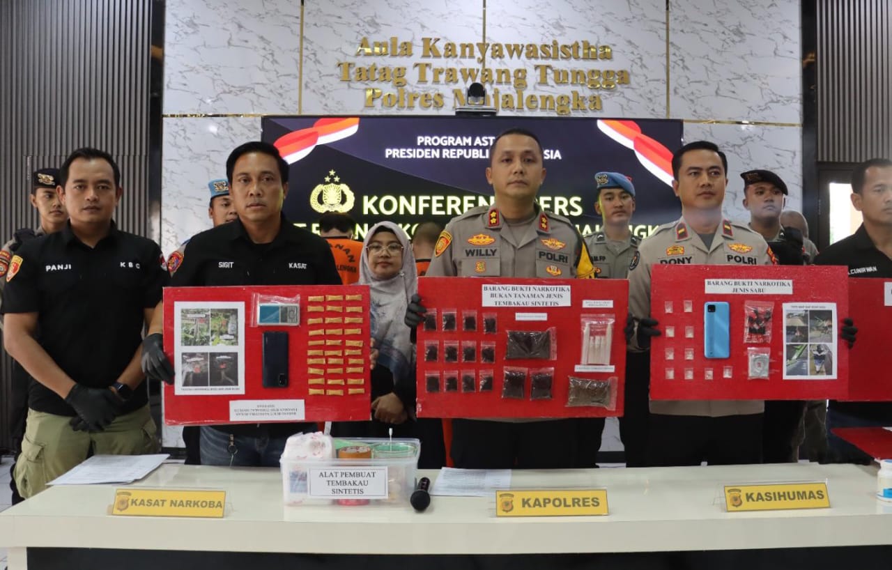 Majalengka, Polres Majalengka kembali menegaskan komitmennya dalam memberantas peredaran narkotika melalui gelaran Press Release Ungkap Perkara Tindak Pidana Narkoba Hasil Operasi Antik yang dipimpin langsung oleh Kapolres Majalengka, AKBP Willy Andrian, S.H., S.I.K., M.H. Kegiatan berlangsung di Aula Kanyawasistha Tatag Trawang Tungga Polres Majalengka dan dihadiri oleh jajaran Satres Narkoba. Pada kegiatan tersebut, Kapolres menyampaikan hasil ungkap kasus narkoba yang dilaksanakan selama periode 6 hingga 15 November 2025, Selasa (18/11/2025).