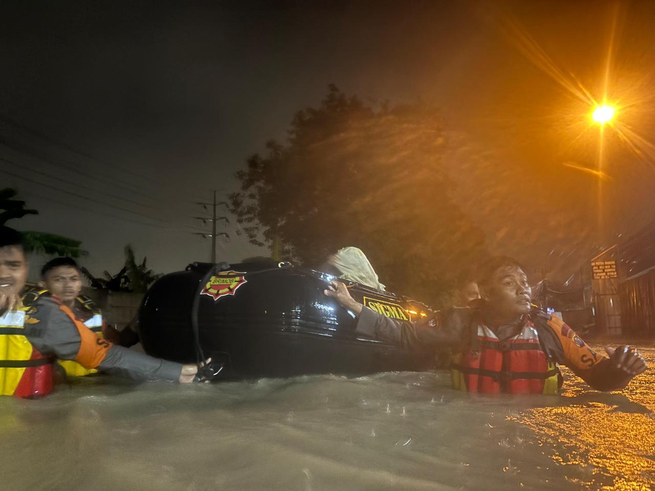 Polda Banten Evakuasi Warga Terdampak Banjir di Ciwandan Cilegon