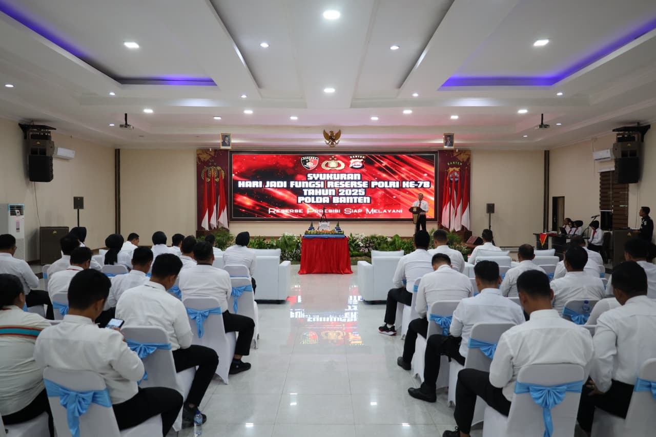 Serang –– Polda Banten menggelar Syukuran Hari Jadi Fungsi Reserse Polri ke-78 Tahun 2025 dengan tema “Reserse Presisi Siap Melayani”, Kegiatan berlangsung di Aula Serbaguna Polda Banten pada Jumat (12/12).