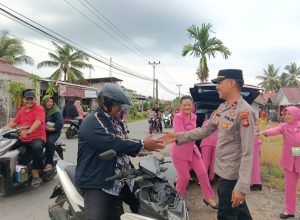 Kapolsek segedong IPDA Pahala Hormes menyampaikan Sasaran dalam kegiatan pembagian Takjil buka puasa adalah masyarakat yang melintas di Jl. Raya Segedong Desa Parit Bugis Kec. Segedong