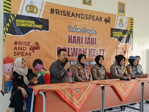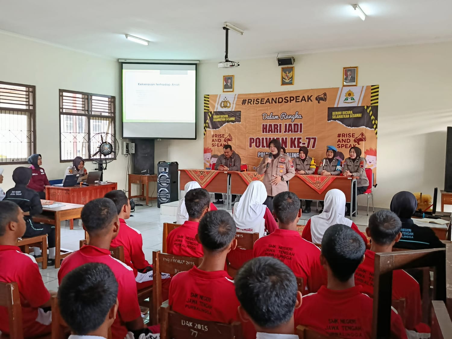 PURBALINGGA – Polwan Polres Purbalingga mengajak siswa berani berbicara melawan ketidakadilan, kekerasan dan eksploitasi untuk menyelamatkan sesama.