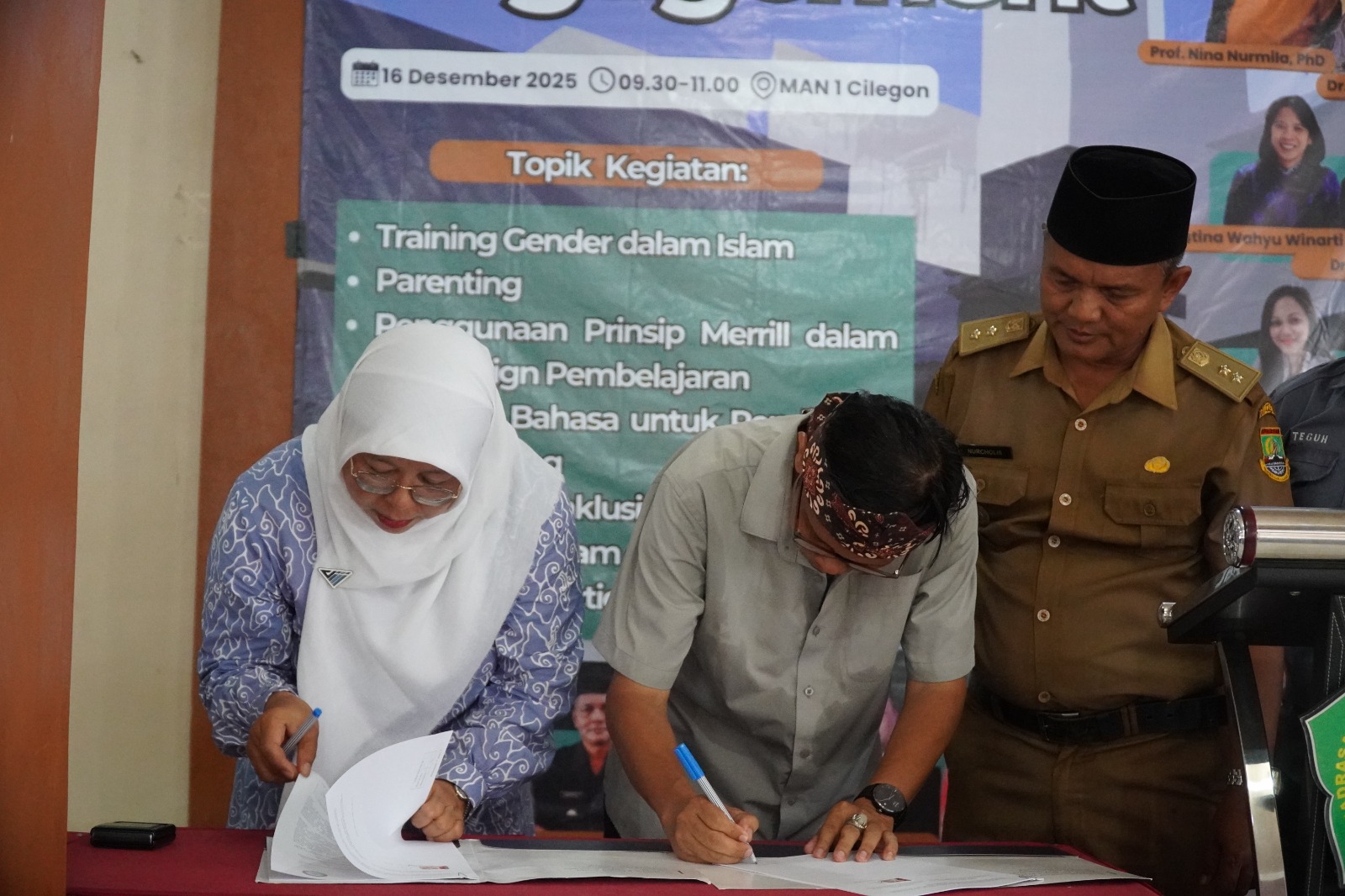 Rangkaian kegiatan dilanjutkan dengan pelaksanaan pemberian materi di kelas-kelas MAN I Cilegon, yang mencakup berbagai tema strategis seperti Gender dalam Islam, parenting, empati dan inklusivitas, wasathiyyat Islam dan Pancasila, berpikir kritis, penalaran spasial, serta penguatan kemampuan Bahasa Inggris.