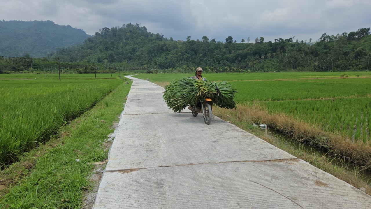 Sebelumnya, jalan usaha tani tersebut hanya berupa jalan tanah yang sulit dilalui, terutama saat musim hujan. Kondisi itu sering kali menyulitkan para petani untuk mengangkut hasil panen maupun rumput pakan ternak. Namun kini, berkat pembangunan rabat beton sepanjang beberapa ratus meter, akses menuju lahan pertanian menjadi jauh lebih mudah, aman, dan efisien.