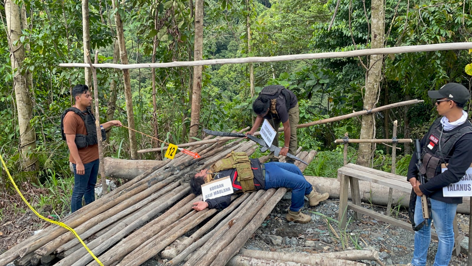 Rekonstruksi dilakukan dengan pengamanan ketat, melibatkan 15 kendaraan taktis, 24 pucuk senjata laras panjang, serta perlengkapan bodyvest dan helm tempur.