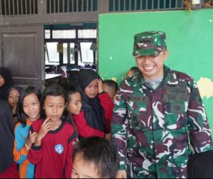 Siswa SD Sambut Hangat Kunjungan Kasi Ter Kasrem 121/Abw di Lokasi TMMD Regtas Ke-126 Kodim 1208/Sambas