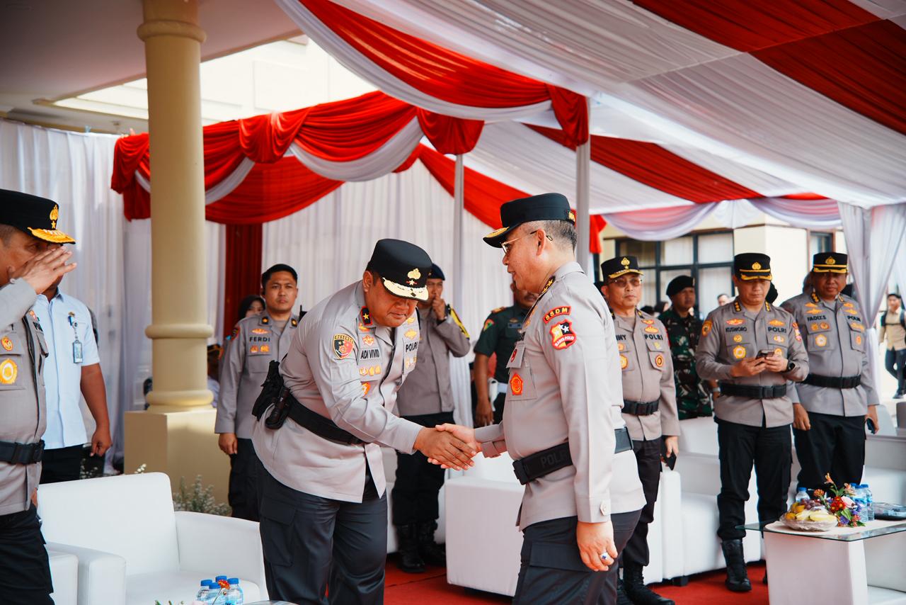Wakapolda Jawa Barat Brigjen Pol. Adi Vivid Agustiadi Bachtiar, S.I.K., M.Hum., M.S.M. mendampingi Asisten SDM (Ass SDM) Kapolri Irjen Pol. Anwar, S.I.K., M.Si. dalam Upacara Pembukaan Peningkatan Kemampuan Training of Trainer (TOT) Instruktur dengan tema “Polisi Sadar Berkarakter”, yang digelar di Lapangan Batalyon B Resimen IV Pasukan Pelopor, Kabupaten Purwakarta, pada Kamis (27/11/2025).