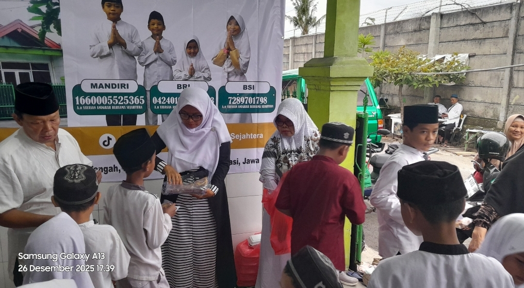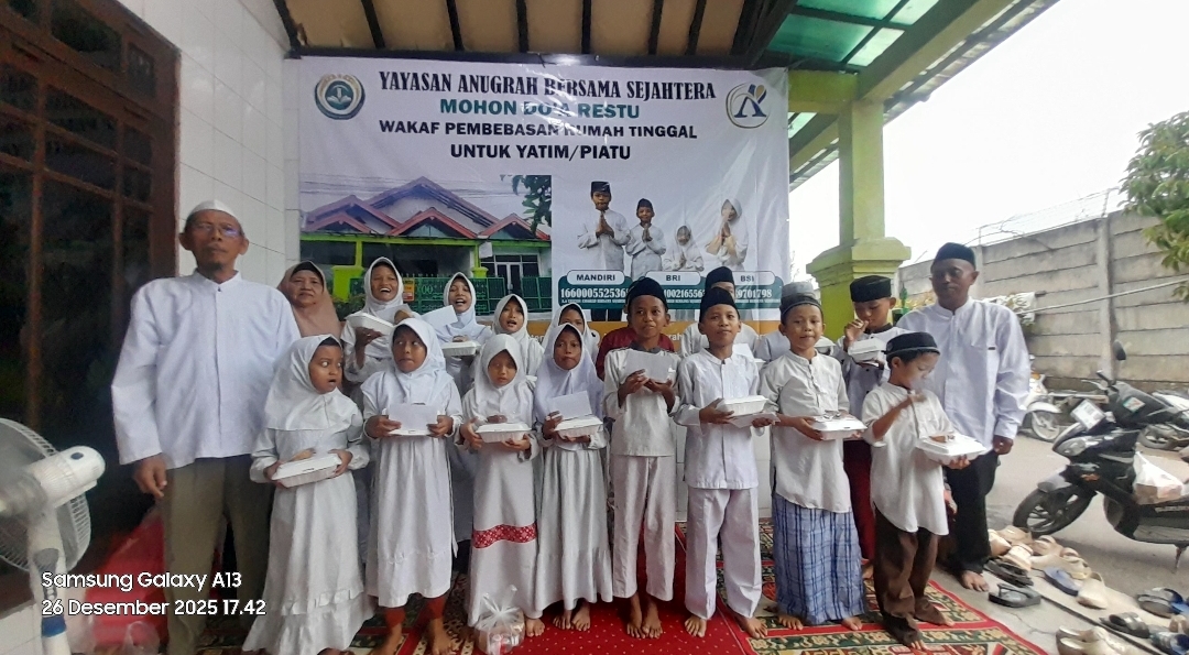 Kota Bekasi — Yayasan Anugerah Bersama Sejahtera (YABS) menggelar doa bersama sebagai bagian dari ikhtiar wakaf pembebasan rumah tinggal yang direncanakan menjadi asrama anak yatim dan piatu. Kegiatan tersebut dilaksanakan pada Jumat sore, 26 Desember 2025, di kediaman milik H. Eddy Suyatno yang berlokasi di Kampung Kaliabang Tengah, RT 001/RW 04, Kelurahan Kaliabang Tengah, Kecamatan Bekasi Utara, Kota Bekasi, Jawa Barat.